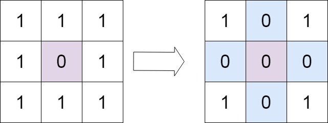 matrix 중 0이 있다면 해당 0의 행과 열을 모두 0으로 바꾼다.